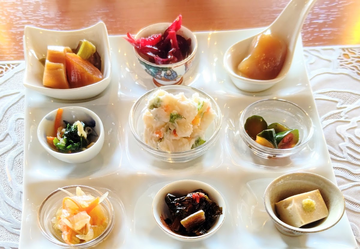 The menu at Konohana Sakuya offers a feast for the senses, featuring dishes crafted with seasonal ingredients that showcase the best of local cuisine. A must-try is the "Konohana Sakuya Lunch," which presents an exquisite variety of nine seasonal appetizers artfully arranged to stimulate your palate before you move on to the main course. Each dish is not only beautiful to behold but also bursting with flavors – the potato salad and beetroot stew come highly recommended by patrons for their delightful taste.